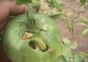 – OMIDA FRUCTELOR ( Helicoverpa armigera) – atacul incepe din faza de larva cu roaderea frunzelor, apoi omida patrunde in fruct hranindu-se cu pulpa fructului si ducand la deprecierea calitativa si cantitativa a productiei.
