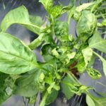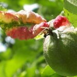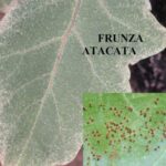 – frunzele tinere se incretesc , se ingalbenesc , se gofreaza si in final se brunifica si cad.