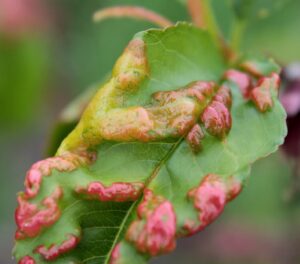 – BASICAREA FRUNZELOR – atacul se manifesta pe frunzulitele tinere care se gofreaza si capata o culoare rosiatica . Netratata boala duce la desfrunzirea timpurie a pomului si pierderea productiei.