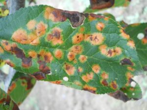 PATAREA ROSIE – boala ataca frunzele pe care se formeaza pete de culoare rosu-inchis , scufundate in interior. Frunzele atacate se usuca si cad , ducand la defoliarea prematura a pomilor si influientand negativ cresterea ramurilor si maturarea lemnului.