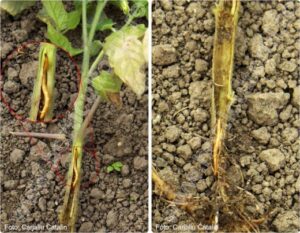 La TOMATE( in camp, gradina sau solar ) viermii sarma urca prin radacina, trec in tulpina plantelor si se hranesc la interior. Plantele atacate au cresteri debile, frunzele se ingalbenesc iar in sectiune longitudinala observam daunatorul. In situatia unui atac masiv cultura este compromisa.